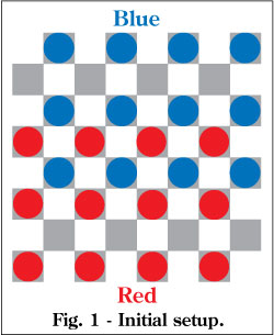Liger is a two player game played with a Checkers set. The initial setup is shown in Figure 1. Only the dark squares are used in play.