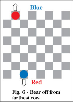 You lose the game if, at the conclusion of your turn, your opponent has no checkers showing. In Figure 7a, it's Red's turn. Red must not