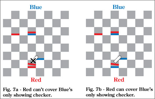 cover Blue's only showing checker. In Figure 7b, Red can cover Blue's